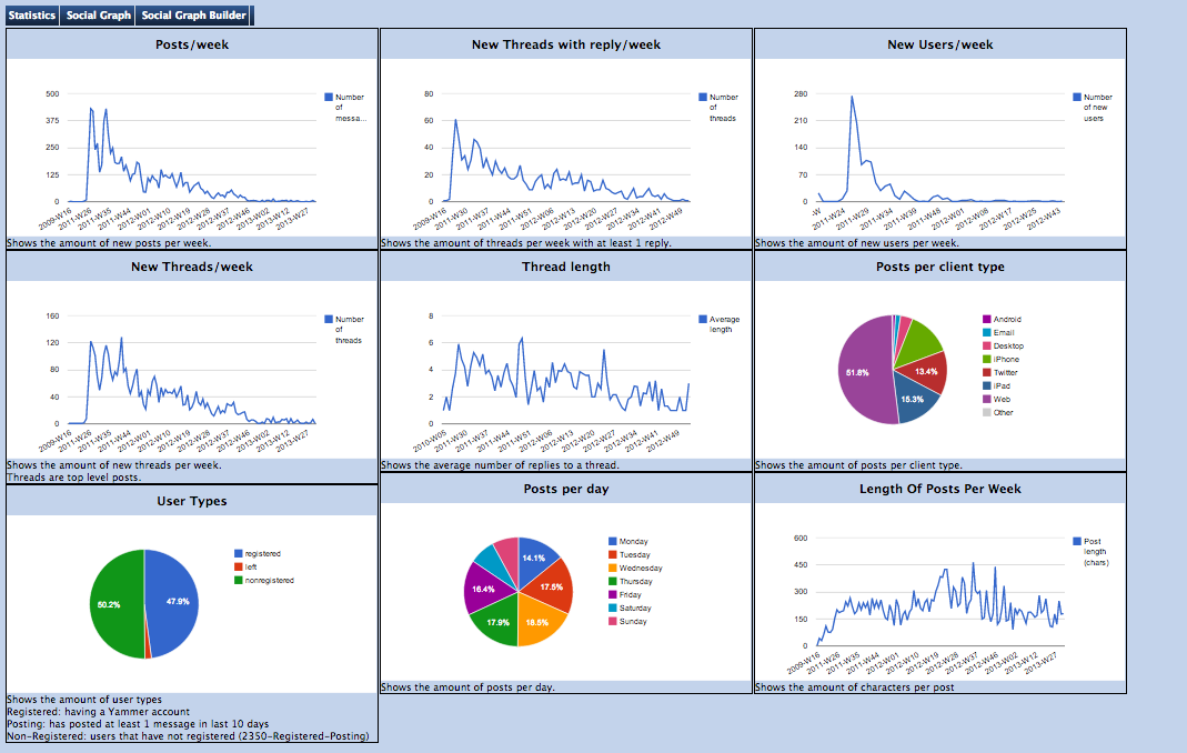 Within the company I work we started using Yammer as a Social Platform. The platform was selected by the User community but we had no usage statistics.